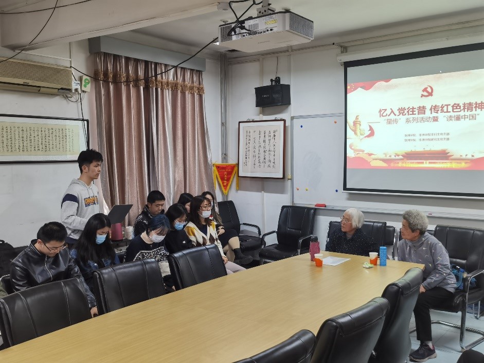 薪火相传,继往开来。时值中国共产党建党100周年之际,为教育引导广大青年学生爱党、爱国、爱社会主义,充分发挥“五老”亲历者、见证者、实践者的优势,扎实开展党史、新中国史、改革开放史、社会主义发展史等历史教育,pp电子游戏平台官网、非洲学院本科生、研究生党支部应关工委关于开展“读懂中国”活动的指示,于2021年4月2日开展“忆入党往昔,传红色精神”——“星传”系列活动暨“读懂中国”活动。活动由本科生党支部预备党员丁一洺主持。