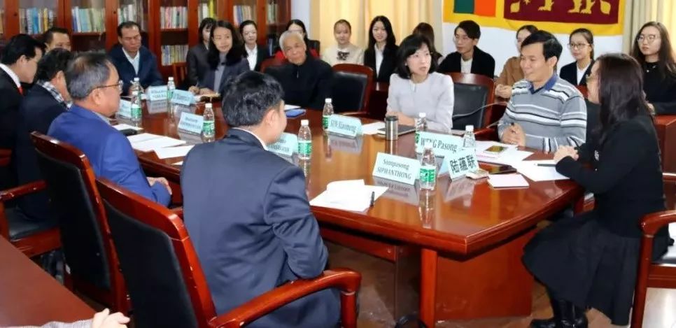 2018年11月5日下午,老挝教育体育部学生事务司司长坎鲁萨·努安萨万教授率团访问pp电子。亚非学院院长孙晓萌教授接见了代表团,代表团与老挝语专业全体师生进行座谈。