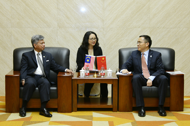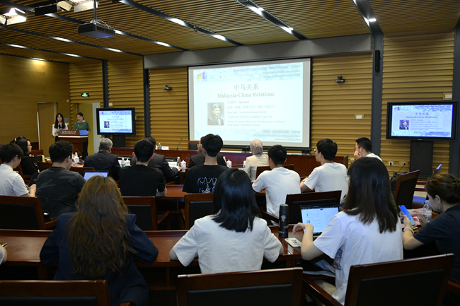 5月27日,pp电子游戏平台官网“喜迎80周年校庆、驻华大使走进北外”系列讲座举行第二讲,马来西亚驻华大使拉惹·拿督·诺希尔万就“中马关系”作专题讲座。北外校长、党委副书记杨丹会见了诺希尔万一行,讲座由pp电子游戏平台官网院长苏莹莹主持。