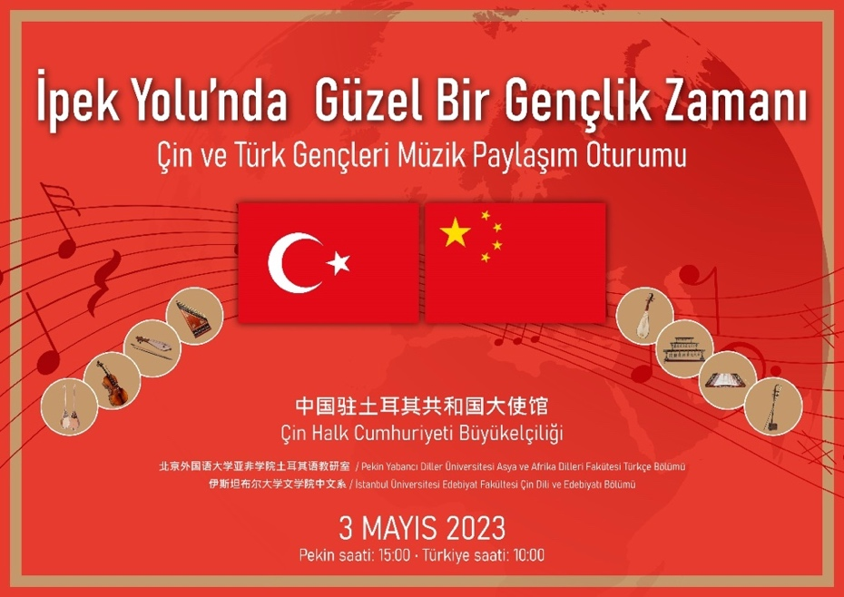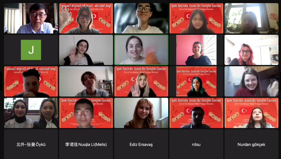 为庆祝“一带一路”倡议提出十周年,落实习近平总书记提出的全球文明倡议,在五四青年节前夕,中国驻土耳其大使馆举办丝路韶华—中土青年音乐分享会,北外pp电子游戏平台官网土耳其语专业师生同土耳其伊斯坦布尔大学中文系师生代表共同参加此次线上交流活动。