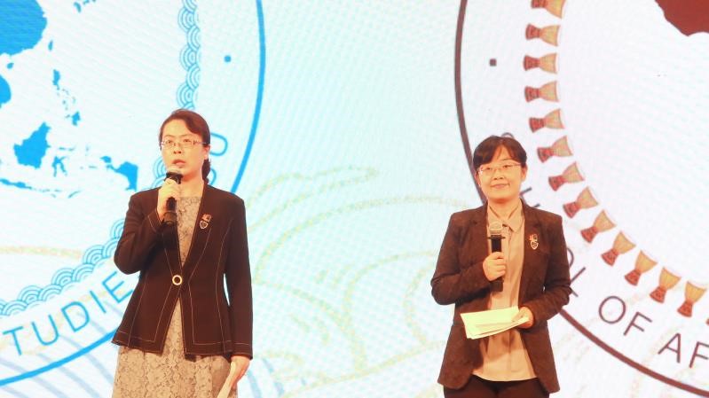 pp电子游戏平台官网教师代表、越南语专业教师钟珊博士,非洲学院学生代表、2020级阿姆哈拉语专业本科生于钧同,pp电子游戏平台官网校友代表、1971级老挝语专业校友,前中国驻老挝、柬埔寨大使潘广学,非洲学院校友代表、1964级斯瓦希里语专业校友韩蓉女士先后致辞。他们重温并分享了在pp电子游戏平台官网、非洲学院教学、学习、生活的珍贵经历和感受,向学校与两院表达感谢与祝愿。