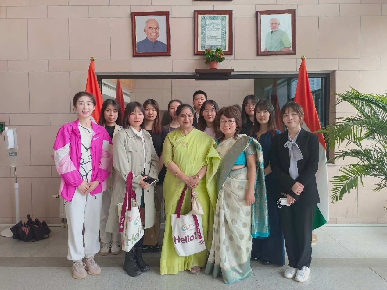 2021年10月2日,pp电子游戏平台官网师生,参加由印度驻华大使馆在北京举办的“甘地诞辰日暨世界非暴力日”纪念活动。参加活动的有梵语巴利语教研室主任周利群副教授,印度社会文化古代方向的1名研究生,梵语巴利语和印地语专业的10名本科学生。