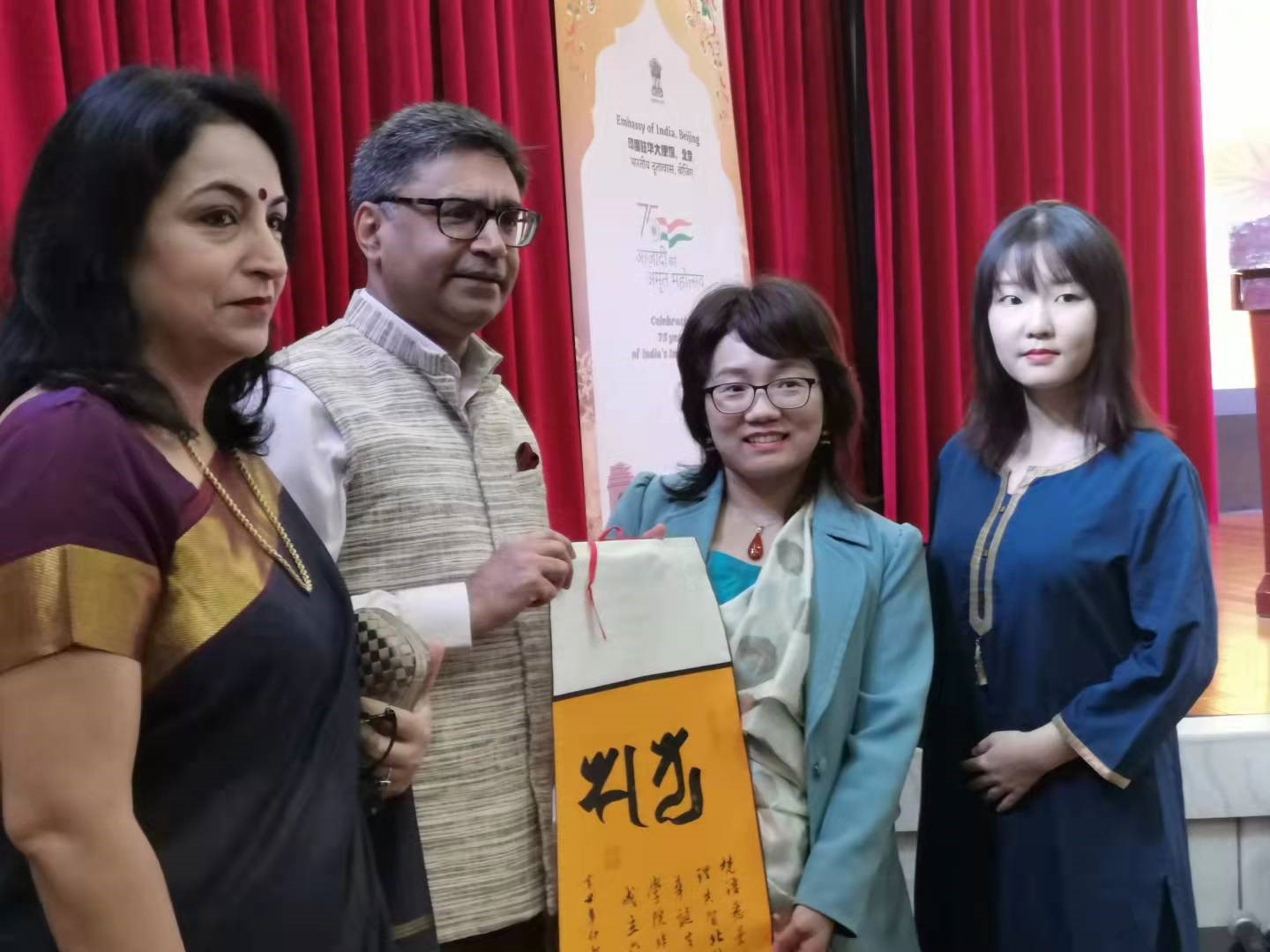 pp电子游戏平台官网师生向印度驻华使馆文化处一秘贝婧琦(Rajashree Behera)女士,赠送了研究中印古代天文学交流的专著《<虎耳譬喻经>的文本与研究——中印间天文、历法和文学的交流》。贝婧琦女士代表印度大使馆文化处,表达了对北外印度相关语种学科的良好祝愿,对中印关系和谐发展的美好憧憬。