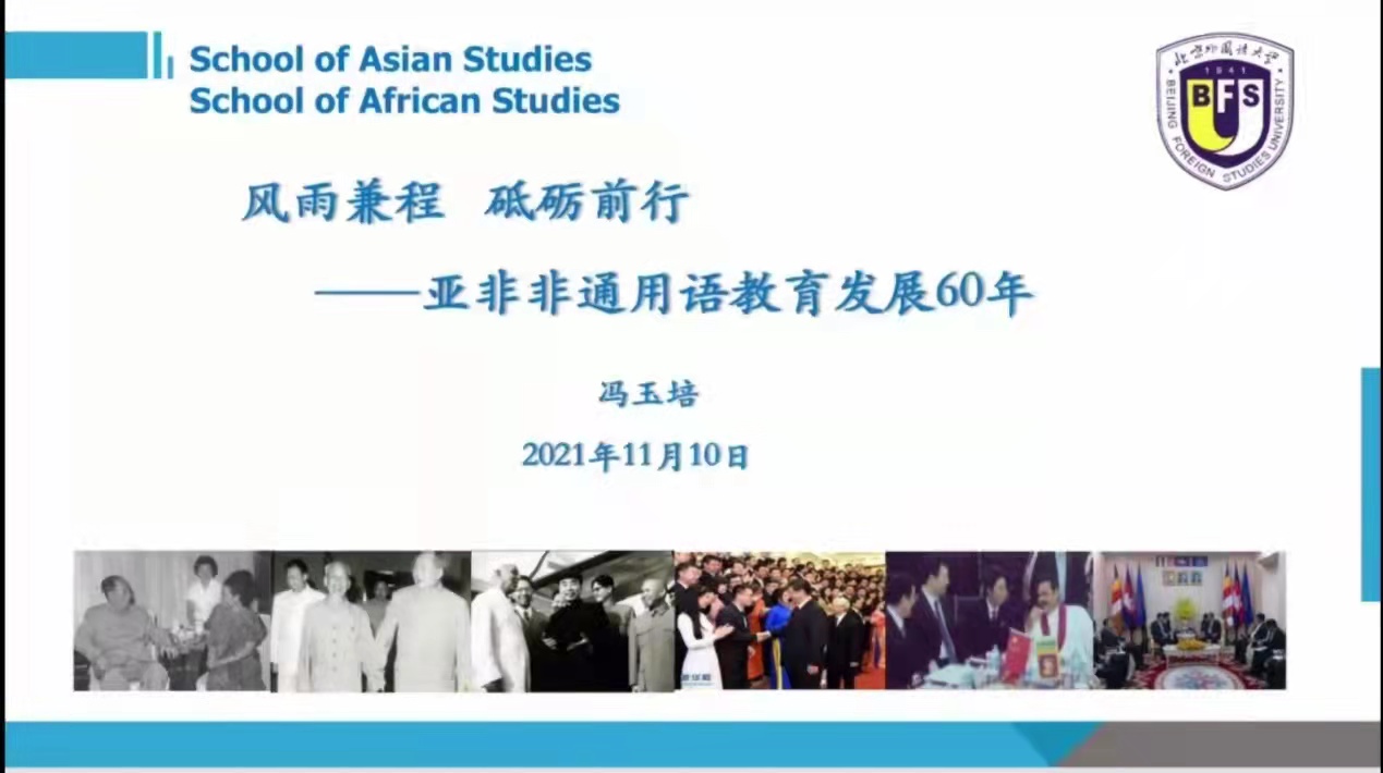 2021年11月10日下午4时,pp电子游戏平台官网、非洲学院“立德树人”新生引航系列讲座第三讲拉开帷幕。本次讲座的主题为“风雨兼程砥砺前行——亚非非通用语教育发展60年”。本场讲座由冯玉培教授主讲,非洲学院苏晓楠老师主持。pp电子游戏平台官网、非洲学院2021级全体新生在线上参与讲座。