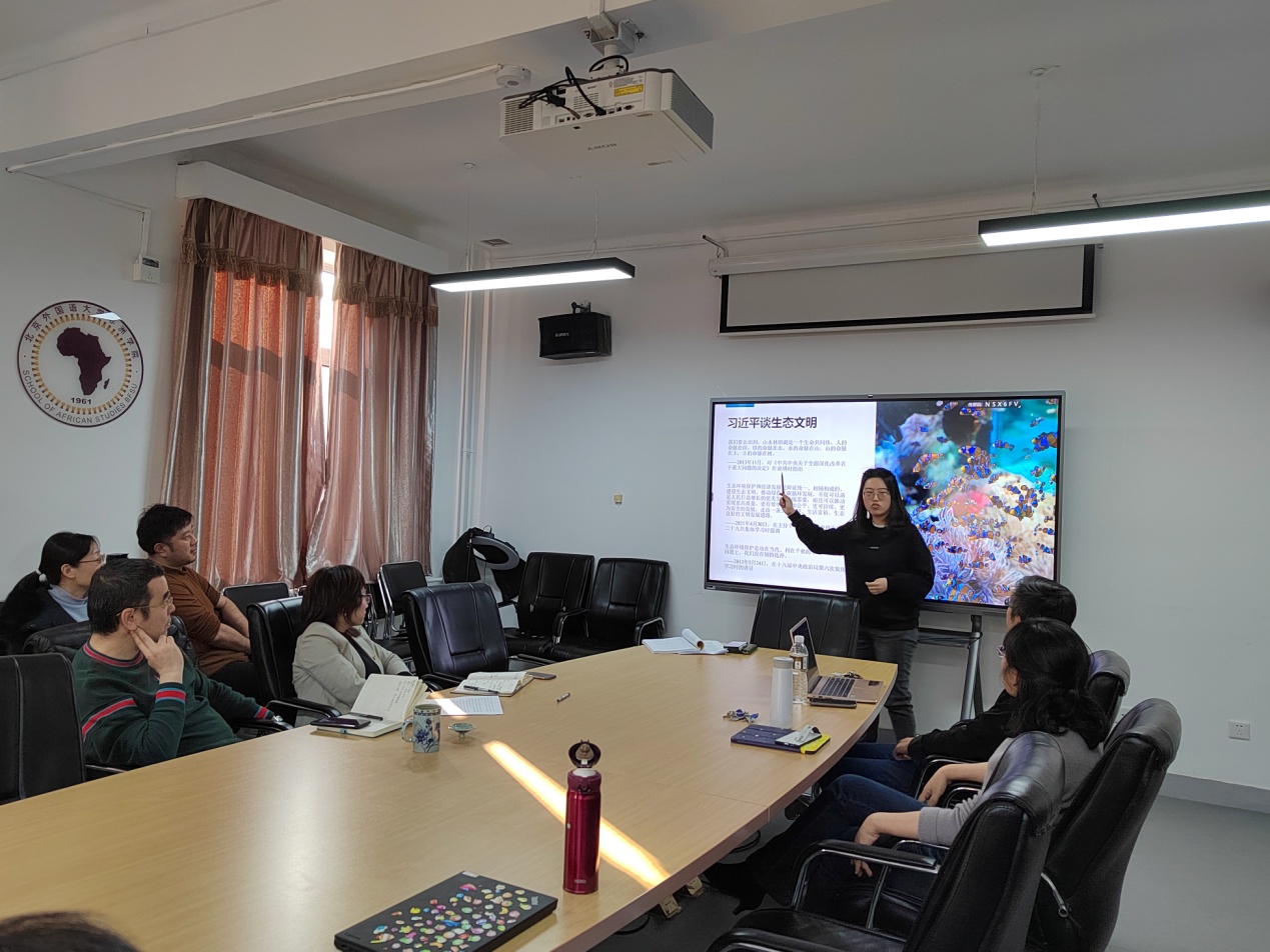 2022年1月14日下午13:00,pp电子游戏平台官网、非洲学院教工二支部党支部创新理论学习暨亚非心连心工作坊第四次活动在学院会议室344顺利举行,这是2022年第一次也是本学期最后一次党支部创新理论学习活动。pp电子游戏平台官网、非洲学院二十多名党员共同参加了这次学习活动,活动主题是“动物研究与生态文明思想”。