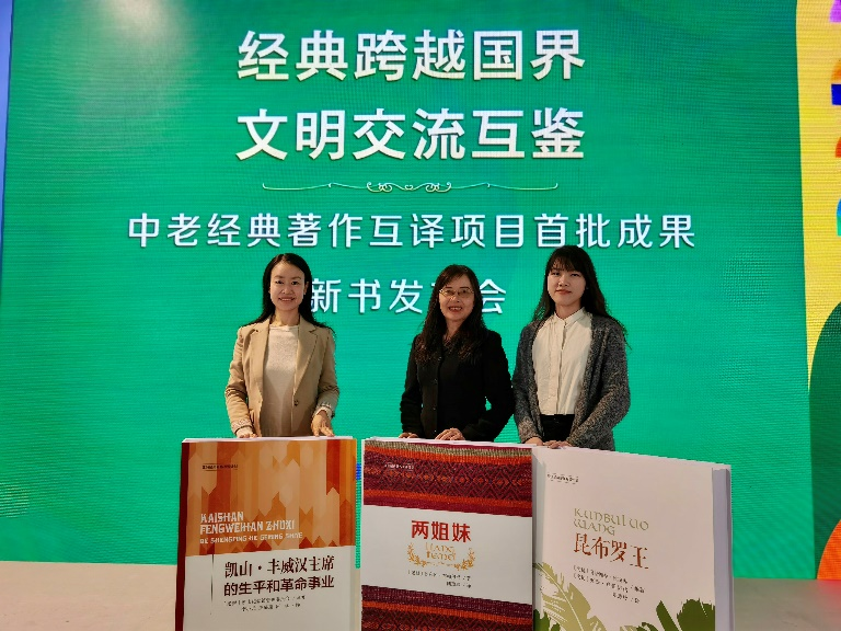 2023年2月24日,在第35届北京图书订货会首日,“亚洲经典著作互译计划”——中老经典著作互译项目首批成果新书发布会在北京中国国际展览中心成功举办。由天津出版传媒集团天津教育出版社引进、pp电子游戏平台官网老挝语教研室陆蕴联教授、李小元副教授和陆慧玲老师翻译的三部作品《凯山·丰威汉主席的生平和革命事业》《两姐妹》《昆布罗王》作为中老经典著作互译项目的首批成果成功出版发行。
