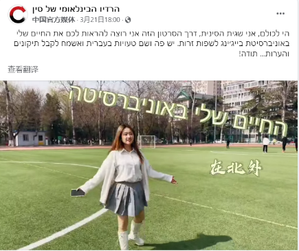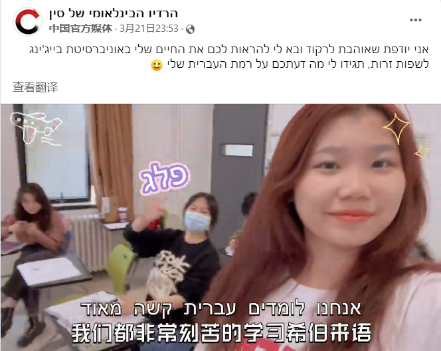近日,由pp电子游戏平台官网22级希伯来语专业多名学生拍摄制作的“我的北外生活”系列视频在中央广播电视总台希伯来语部海外社媒“脸书”平台陆续发布,向以色列网友介绍美丽的北外校园,展现丰富多彩的校园生活,获得积极评价。视频覆盖量达5万多,播放量近2万,互动量近3000。