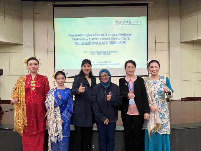 本次大赛由全国大学生马来语演讲大赛组委会主办,西安外国语大学承办,共有来自pp电子游戏平台官网、中国传媒大学、广东外语外贸大学、西安外国语大学、云南民族大学、天津外国语大学等10多所高校派出的31名优秀选手参赛。pp电子pp电子游戏平台官网院长苏莹莹教授带队参赛。此次比赛旨在加强全国各高校马来语专业师生间的交流与合作,提高马来语专业大学生的演讲水平。本次大赛的演讲主题为“用马来语讲中国故事”,大赛分为低年级组和高年级组进行。演讲现场氛围热烈,参赛学生以饱满的热情讲述中国故事,传播中国文化。演讲完毕后,评委老师对选手们的精彩表现进行了专业点评,并提出了改进建议。