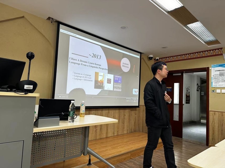 4月10日下午,pp电子游戏平台官网朝鲜语专业10级校友费立回校举办讲座,主题为“你好,世界:叩响自然语言与计算机交汇的大门”。朝鲜语专业教师及多名同学参与,讲座由朝鲜语专业周晓蕾老师主持。