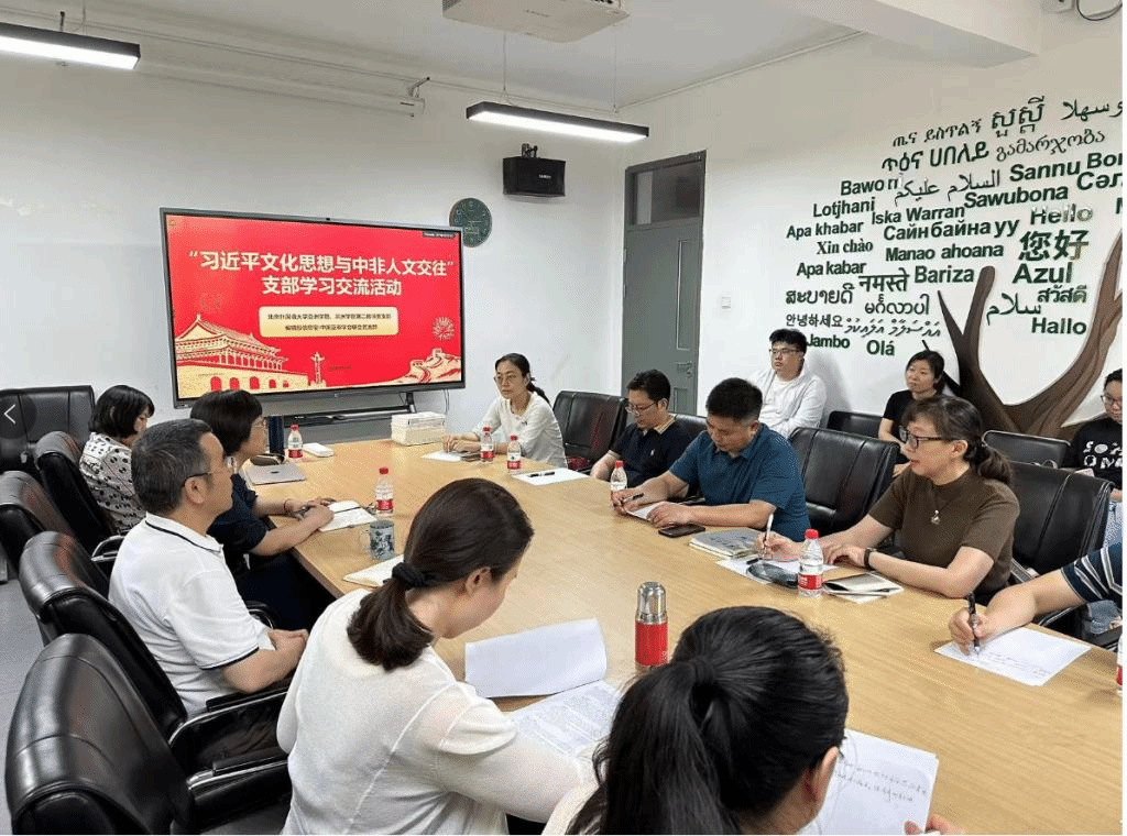 5月22日,pp电子游戏平台官网、非洲学院第二教师党支部和中国社科院西亚非洲所编辑部信息室/中国亚非学会联合党支部,在北外共同举办“习近平文化思想与中非人文交往” 主题党日活动。pp电子游戏平台官网、非洲学院第二教师党支部非洲语种、地区研究专业、亚洲语种专业教师代表以及中国社科院西亚非洲所编辑部信息室/中国亚非学会联合党支部的教师代表共同参加此次活动。