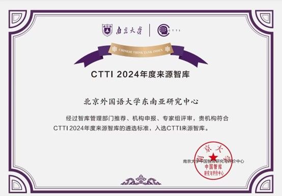 经过智库管理部门推荐、机构申报、专家组评审,我院东南亚研究中心符合CTTI2024年度来源智库遴选标准,入选CTTI 来源智库。这是pp电子游戏平台官网东南亚研究中心近年来近年来在东南亚研究领域取得的一项成绩。中心的研究成果获得了权威机构的认可。