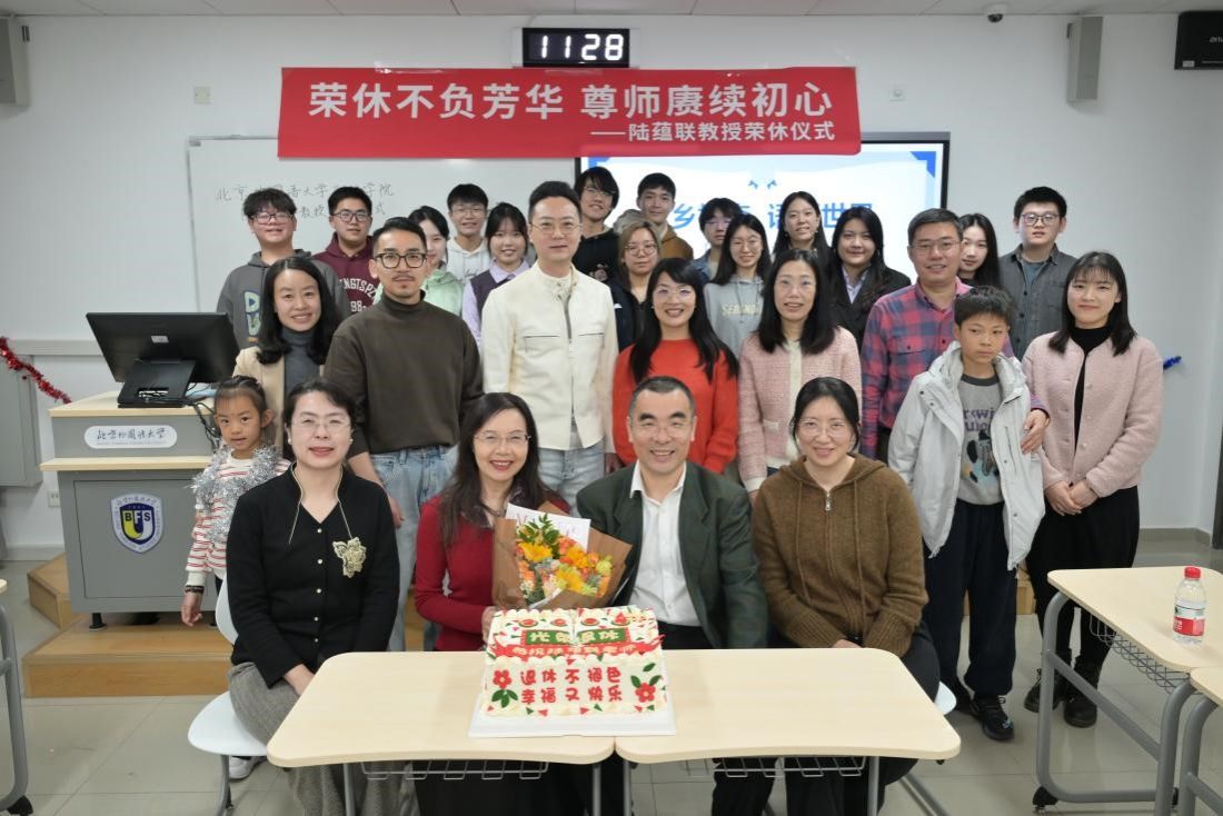 最后,毕业生代表和在校生代表分别向陆教授赠送鲜花和荣休礼物,老挝语专业21级学生以歌曲《让我送你一首歌》和老挝语诗歌朗诵《祝福老师》向恩师致敬。仪式在共切蛋糕和合影留念的温馨氛围中圆满结束。