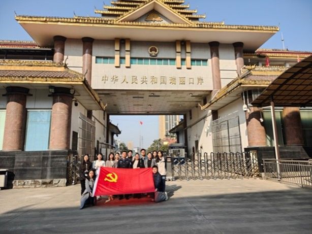 2月12日,pp电子游戏平台官网非洲学院本科生党支部赴滇缅公路开展星跃实践调研之机,调研团带队教师本科生党支部书记罗云燕、pp电子游戏平台官网缅甸语专业副教授赵瑾以及10名支部成员走访了党支部红色“1+1”共建单位国家移民管理局下属单位瑞丽出入境边防检查站,该站政治处派员热情接待了调研团一行。