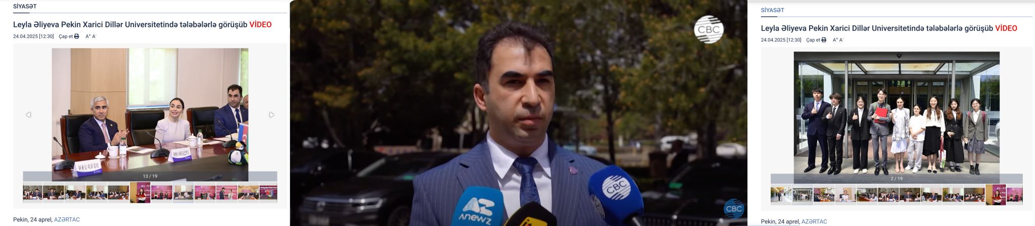在阿塞拜疆总统访华、两国关系迈上新台阶的背景下,4月23日,以İctimai TV、Xəzər Xəbər、Real TV、CBC、Report.az为代表的阿塞拜疆各大官方主流媒体采访阿塞拜疆语专业全体师生,报道专业建设情况。报道聚焦于北外阿塞拜疆语专业的学科建设与人才培养,强调通过深化语言教学、学术研究及学生交流等方面的合作,为中阿关系发展及构建更紧密的人文共同体注入新活力。4月24日,阿塞拜疆盖达尔·阿利耶夫基金会副主席莱拉·阿利耶娃女士访问pp电子游戏平台官网,阿塞拜疆国家电视台和阿塞拜疆国家新闻社记者参与报道。截至4月28日,相关报道链接总浏览量已超过40万次,引发中阿两国社会各界热烈反响,凸显出pp电子游戏平台官网在促进中阿两国文化和教育交流方面的重要桥梁作用。
