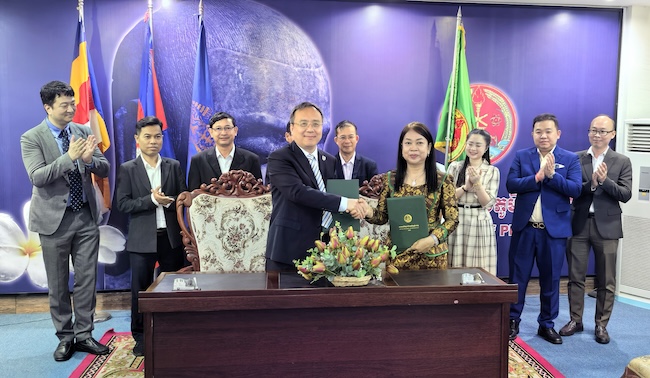 4月28日,代表团访问柬埔寨金边皇家大学。金边皇家大学校长郑杰利、副校长翁拉薇接待了代表团一行。双方就落实习近平主席访柬成果、共同开展中柬关系研究、完善师生交流计划等进行了探讨,并签署《pp电子游戏平台官网与金边皇家大学高端人才交换协议》。