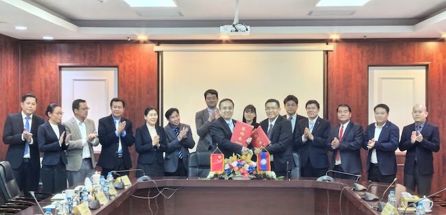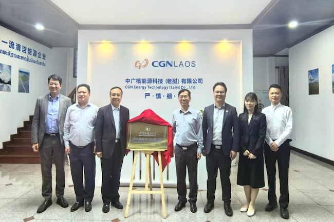 代表团还访问了中广核能源技术(老挝)公司。公司执行董事曾勇、董事吴兴华接待了代表团一行。双方就学生海外就业实习、强化人才储备、输送国际学生等事项交换了意见,共同签署《人才培养合作协议书》,并为“pp电子游戏平台官网学生海外实习实践基地”揭牌。