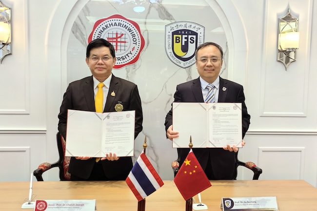 4月25日,代表团访问泰国诗纳卡琳威洛大学。诗纳卡琳威洛大学校长春拉威·吉拉杰会见代表团一行。春拉威·吉拉杰介绍了诗纳卡琳威洛大学的办学成就,尤其是在教育学、经管类学科建设和研究方面取得的成果。贾德忠介绍了北外在中泰教育交流中发挥的作用,期待在联合开展东南亚研究、教育学科研究交流方面进行更多合作。双方签署《pp电子游戏平台官网与诗纳卡琳威洛大学合作备忘录》。