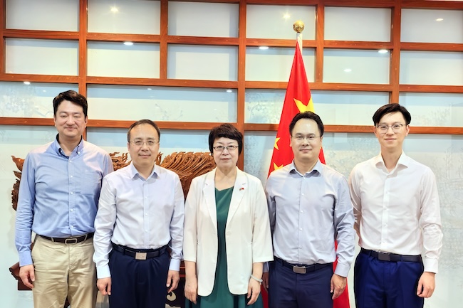 随后,代表团一行拜会中国驻老挝大使馆,方虹大使会见了代表团一行。贾德忠介绍了北外近年来的发展成就和学生就业情况。方虹希望北外在外交人才储备、高端智库咨询等方面为国家外交事业作出更大贡献。双方充分交流了合作意向。