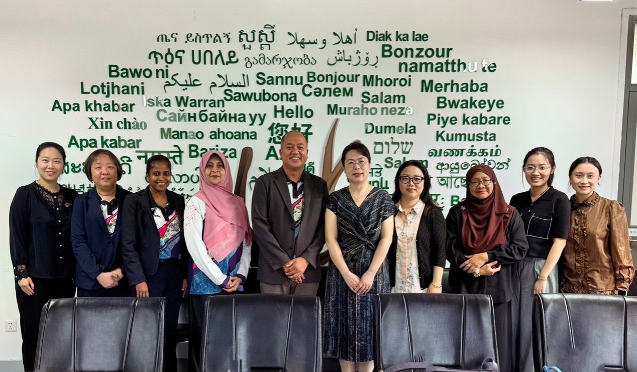 6月16日上午,马来西亚理科大学语言、识能与翻译学院代表团对pp电子游戏平台官网进行友好访问。pp电子游戏平台官网院长苏莹莹教授及马来语专业师生共同参与会见。此次访问旨在深化两校在语言教育、翻译研究等领域的合作,进一步推动中马人文交流与学术互动。