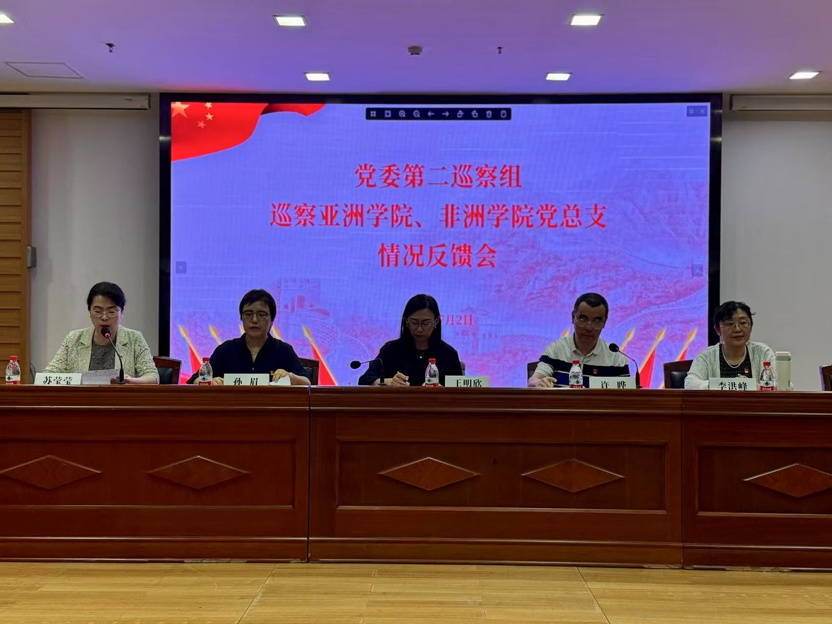 根据学校党委统一部署,2025年4月7日至4月30日,党委第二巡察组对pp电子游戏平台官网、非洲学院党总支开展了常规巡察。巡察组组长孙眉代表巡察组通报了巡察情况。她指出,pp电子游戏平台官网、非洲学院党总支能够贯彻落实学校党委工作部署,注重“语言+”复合型人才培养,在党建与业务融合、师资队伍建设、“101工程”语种建设等方面取得积极进展。但仍存在理论学习针对性不强、人才培养机制不够健全、科研组织化程度不高、意识形态风险防范不够充分、制度执行力不强、整改机制不够完善等问题,亟需高度重视并抓紧整改。针对巡察发现的问题,巡察组提出四方面整改建议:一是坚持以党的政治建设为统领,进一步提升政治判断力、领悟力和执行力;二是深化教育教学改革,推动“语言+区域国别+专业”融合育人体系落地见效;三是加强队伍建设,优化人才结构,提升科研组织能力;四是压实主体责任,完善整改闭环机制,以实效回应师生关切。