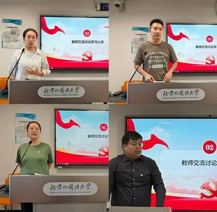 在交流讨论环节,亚非两院四位教师结合自身学习心得,分别从不同角度以师德师风建设为主题进行了交流分享。王丹丹老师聚焦师德师风,分享了自己对 “十项准则” 的深入理解,举例说明师德师风建设不仅要有 “底线要求” 更有 “上限追求”;关博老师基于自身经历,探讨了师德师风的内涵,指出师德与师风的辩证关系,认为师德师风建设需从思想和行为层面落实;苏晓楠老师从法治教育角度出发,指出法治是师德师风的 “安全线” 与 “指南针”,主张将程序正义、学术诚信等法治精神融入教学管理,教师也应成为法治精神的传播者和践行者;党总支组织员赵磊老师结合身边案例强调“错误判定重在性质而非情节”,指出经常性纪律提醒是防范“灯下黑”的关键,警示教师们要时刻保持警惕。